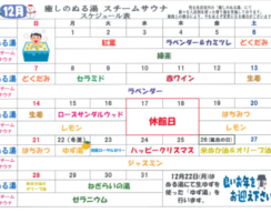 12月のぬる湯&スチームサウナのスケジュールを公開します